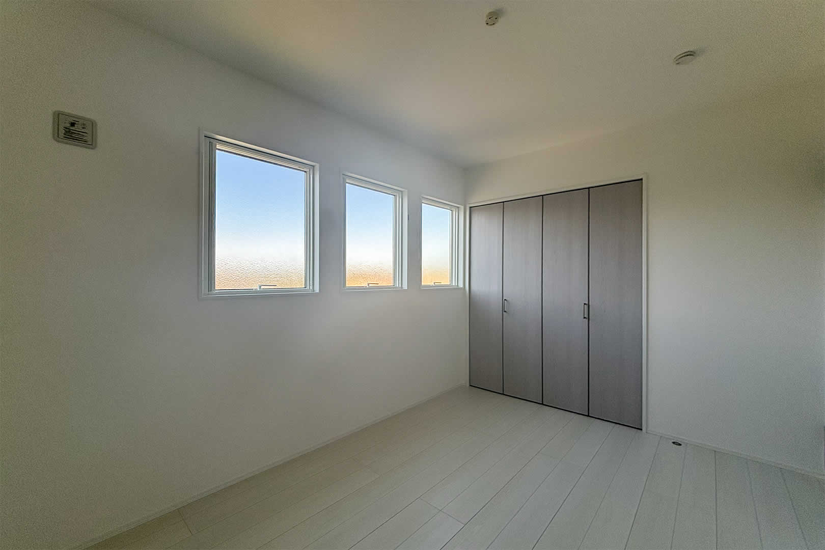 木の温もりを感じる子供部屋。明るい窓からの光で心地よく過ごせる空間です。