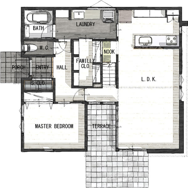 1階に寝室があるので、全ての生活が1階で済ませられます。自然光が優しく差し込み、心安らぐ空間です。